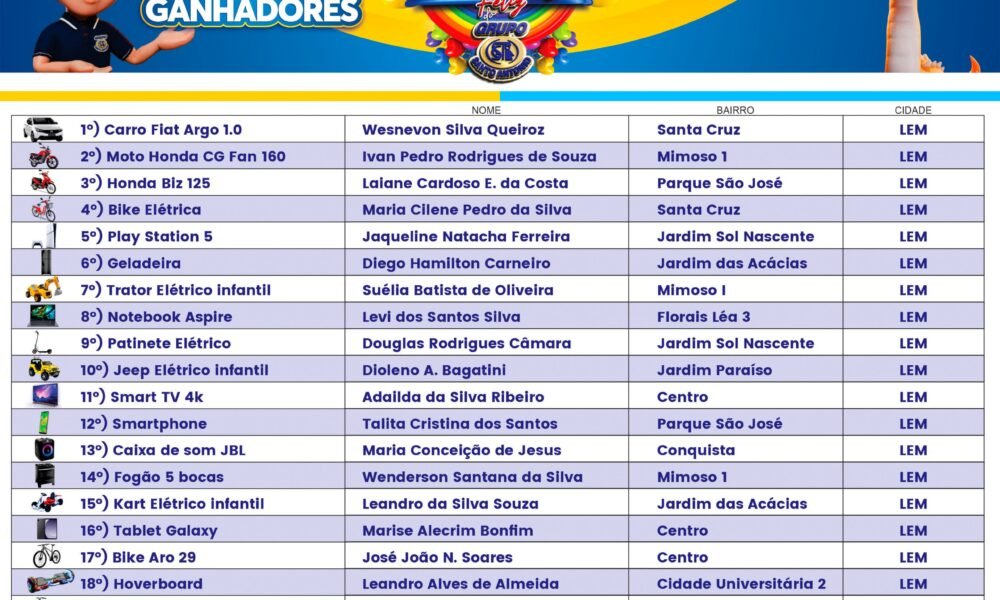 GRUPO SANTO ANTONIO: 14ª Festa Criança Feliz – Lista dos Ganhadores