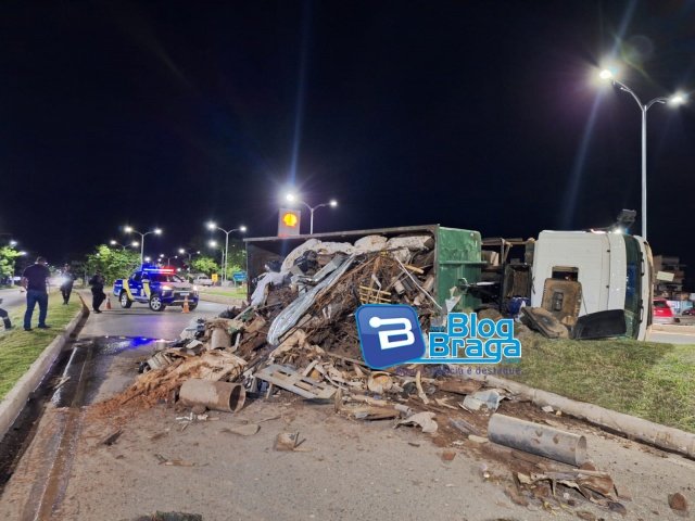 Barreiras: Caminhão carregado com materiais recicláveis tomba na rotatória do Sabbá